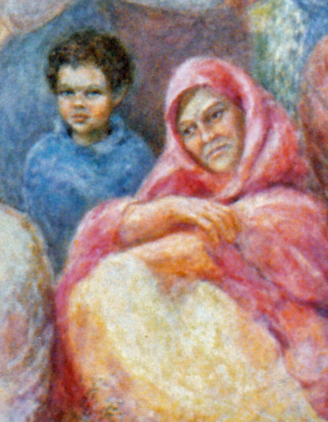 Das Bildnis ist im Freskostil auf einer massiven Tischlerplatte aus Holz angefertigt.