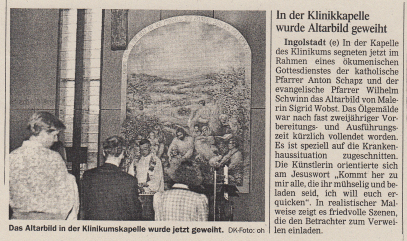 Zeitungsartikel von der Einweihung des Bildes in der Kapelle in Ingolstadt.