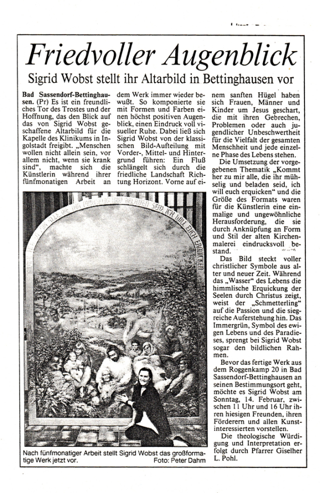 Zeitungsartikel von der Fertigstellung des Bildes in Bettinghausen.